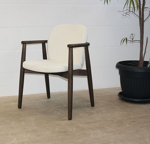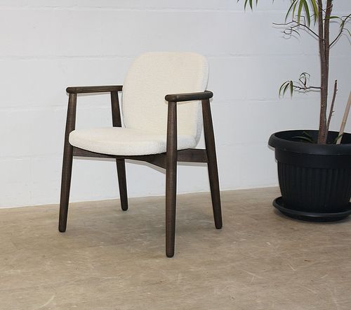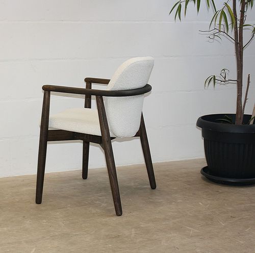 Stuhl mit Armlehne gepolstert 58x83x60cm COSTNER Escheholz Räucheröl Stoff weiß