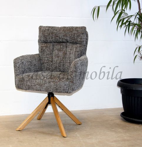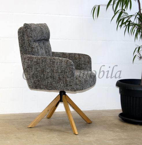Armlehnstuhl mit Drehfunktion, PARKER 61x95x68cm Stoffpolster Holzbeine Eiche natur geölt