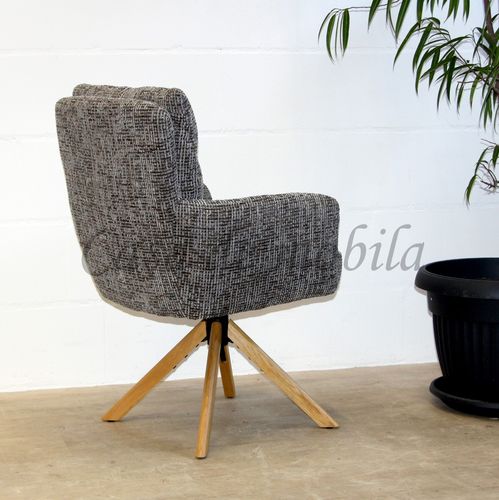 Polsterstuhl mit Armlehnen und Drehfunktion aus Eiche massiv natur geölt