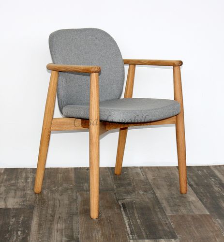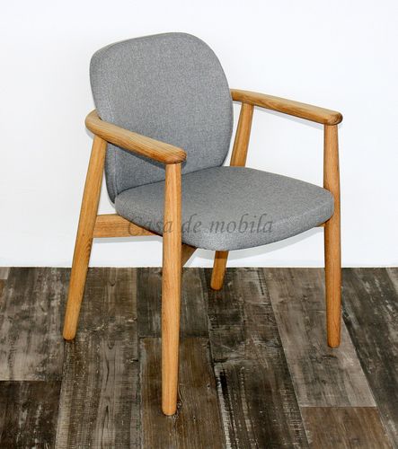 Stuhl mit Armlehne COSTNER 58x83x60cm, Stoffpolster grau, Eiche natur geölt
