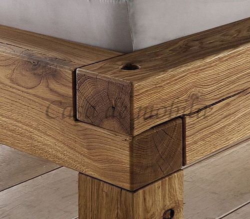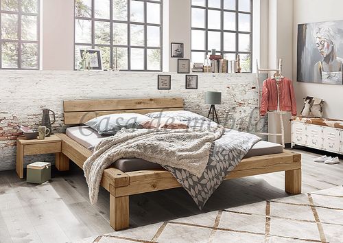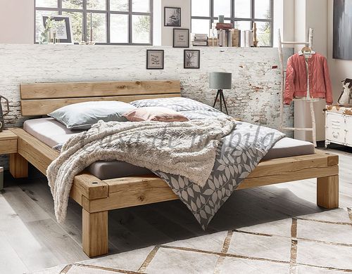 Rustikales Balkenbett I mit Holzbeine Wildeiche massiv Natur geölt