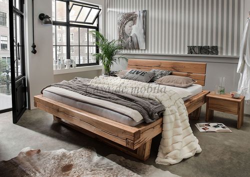 Doppelbett Rustikal UNIKAT Wildeiche massiv geölt Holzkufe Holzkopfteil