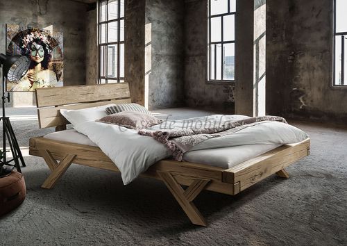 Massivholz Doppelbett Rustikal UNIKAT Wildeiche massiv natur geölt Holzbeine Holzkopfteil