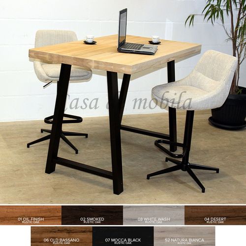 Hochtisch ROMA 140x80cm rustikale Eiche gerade Kante Metallbeine A