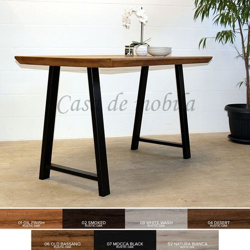Hochtisch ROMA 160x90cm rustikale Eiche Schweizer Kante Metallbeine A