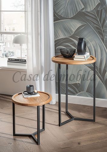 Dieser elegante runde Couchtisch NIKLAS hat ein schwarzes Metallgestell und eine natur geölte Platte aus massiver Wildeiche. Die harmonische Kombination aus robustem Holz und modernem Metall verleiht Ihrem Wohnzimmer einen stilvollen und zeitlosen Look.