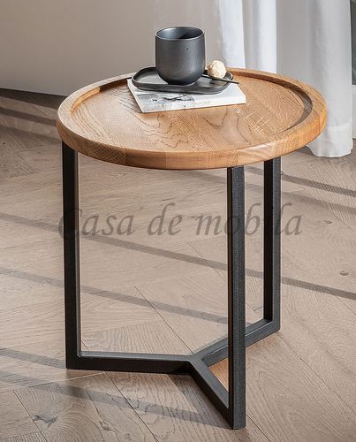Nachttisch Melina ⌀40x40cm Eiche massiv natur geölt Metallbeine schwarz