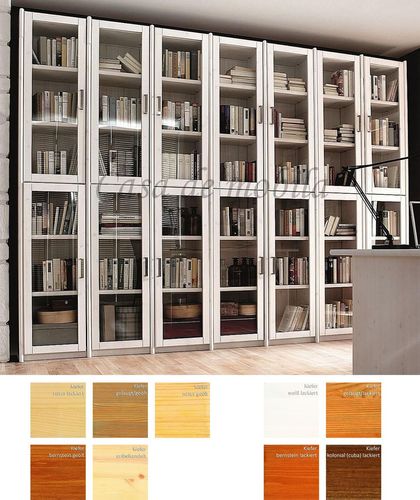 Massivholz Bibliothek - Bücherregal mit 14 Glastüren in Kiefernholz