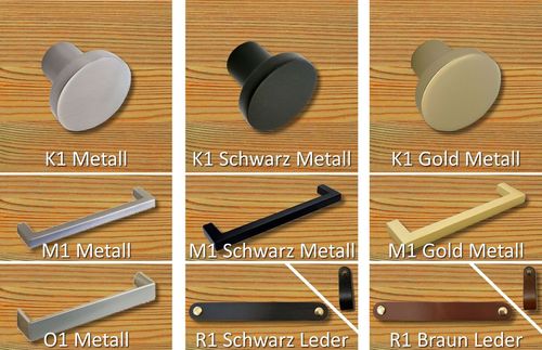 Es sind verschiedene Metallgriffe erhältlich.