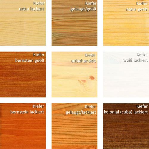 Das Möbelstück ist aus Kiefernholz gefertigt und in verschiedenen Farben lieferbar. Das Holz hat eine Stärke von ca. 20-26 mm.