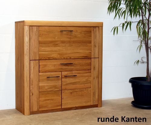 Massivholz Schreibschrank SKYLINE 115x120x40cm Wildeiche massiv geölt