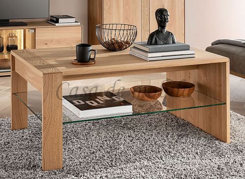 Der rechteckige Couchtisch HERZBERG mit einem Ablageboden aus Glas und ist ein idealer Bestandteil für Ihre Anbauwand.