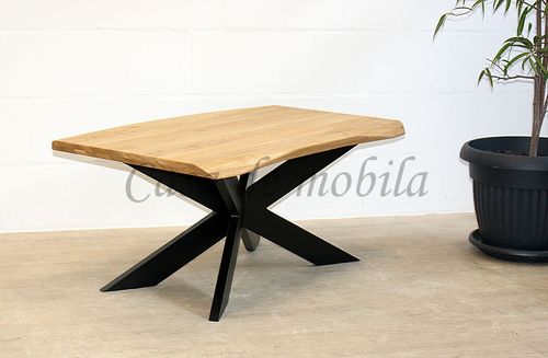 Massivholz Sofatisch aus Wildeiche mit Spinnengestell