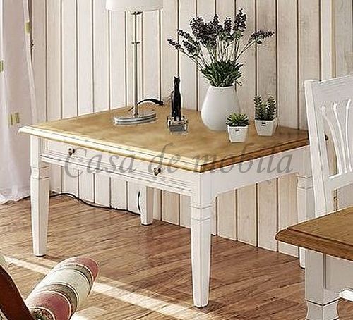 2-farbig antikweiß / Tischplatte antik lackiert