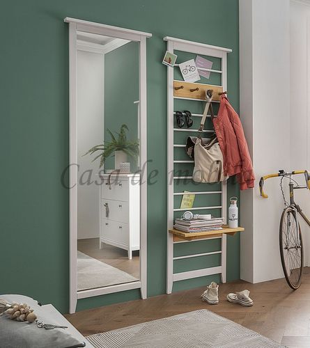 Garderobe, Spiegelpaneel - Kiefer weiß gewachst und gelaugt/geölt