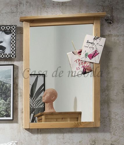 Der Wandspiegel hat einen Holzrahmen aus massiver Kiefer.