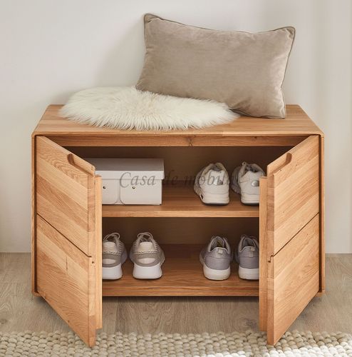 Dielenbank 2türig mit runden Ecken 80x47x40cm Eiche massiv natur geölt