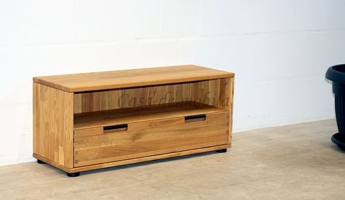 Sie kann mit der breiten Schublade und dem offenen Fach sowohl als Dielenbank im Flur als auch als TV-Lowboard im Wohnzimmer verwendet werden.