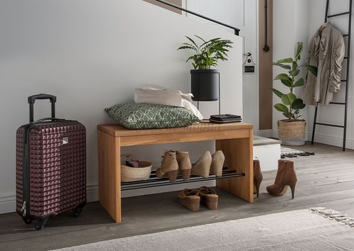 Die kleine Flurbank ist nicht nur zum Sitzen geeignet, sie bietet auch eine Abstellmöglichkeit für ca. 3-4 Paar Schuhe.