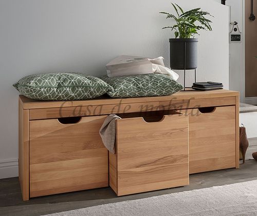 Diese große Dielenbank wird mit 3 Holz-Schubkästen ausgeliefert. Diese bieten viel Stauraum und können unter die Sitzbank geschoben werden.