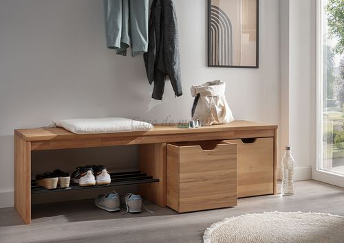 Diese große Dielenbank ist nicht nur zum Sitzen geeignet, sie bietet auch eine Abstellmöglichkeit für ca. 3-4 Paar Schuhe. Sie wird außerdem mit 2 Holz-Schubkästen ausgeliefert. Diese bieten viel Stauraum und können unter die Sitzbank geschoben werden.