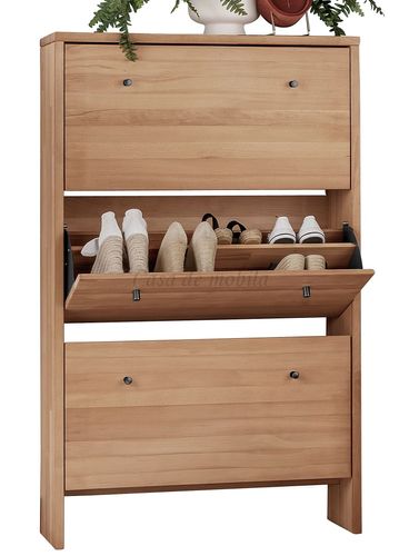 Die Schuhkommode verfügt über 3 Klappen und ist für ca. 12-16 Paar Schuhe geeignet.