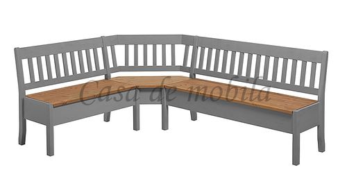 Eckbank 213x170cm Kiefer massiv Truhenbank 2farbig grau gelaugt geölt