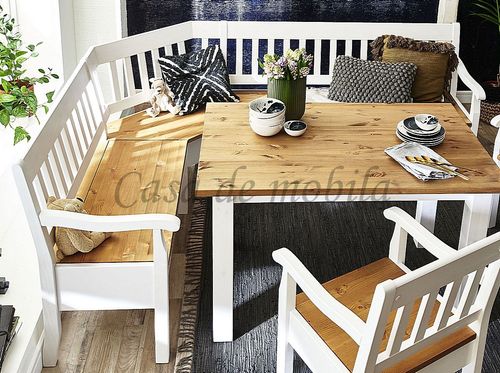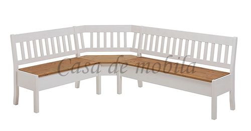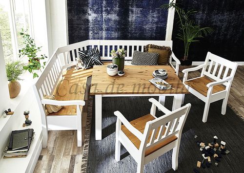 Massivholz Eckbank 213x170 - Kiefer 2-farbig weiß / gelaugt geölt
