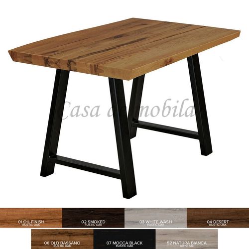 Die Serie Concept 4 You kann aufgrund der unterschiedlichen Varianten mit einer hohen Flexibilität glänzen. Die massive Tischplatte sitzt auf einem Eisengestell im Industrie Look und sorgt damit für eine außergewöhnliche Kombination aus unterschiedlichen Elementen. Die Besonderheit an den Tischen aus Balkeneiche von Bodahl ist die auffallend rustikale Oberfläche. Tiefe Risse sind hier ein Zeichen für ein hohes Maß an Natürlichkeit und Qualität. Sie können Ihren Esszimmertisch in 7 unterschiedlichen Holzvarianten wählen.
