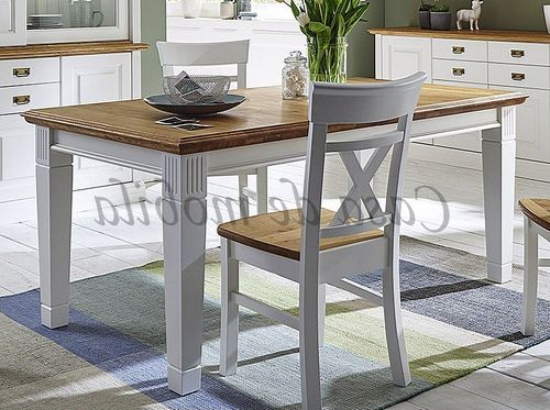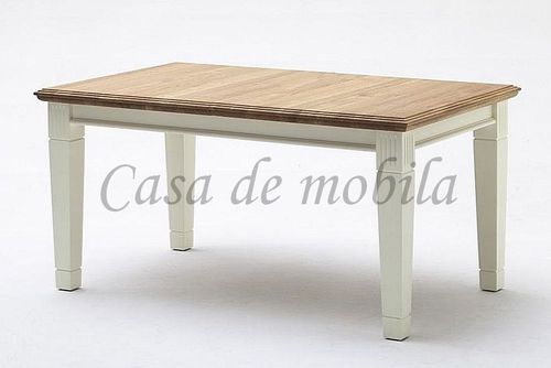 Küchentisch OAKDALE 140x76x80cm Birke massiv weiß lackiert / Wildeiche massiv natur geölt