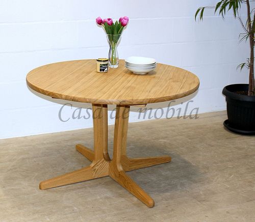 Ideal für kleinere Räume oder als Mittelpunkt eines Essbereichs, passt sich der Tisch flexibel den Bedürfnissen an. Dank der runden Form bietet er genügend Platz für gemütliche Mahlzeiten und gesellige Zusammenkünfte, während er gleichzeitig kompakt genug ist, um den Raum nicht zu überladen.