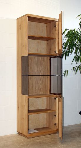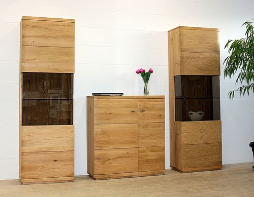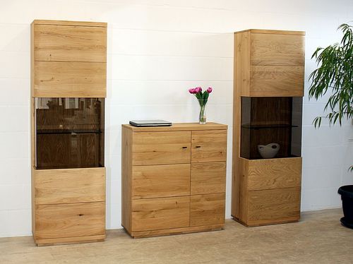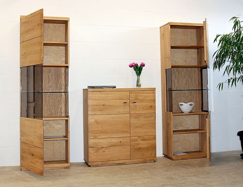 Wohnwand Pinos aus Wildeiche massiv – 2 Vitrinen und Sideboard