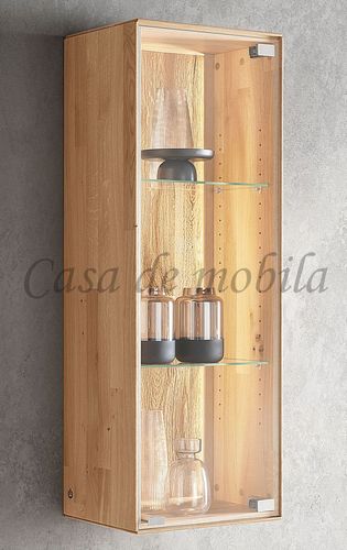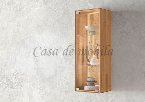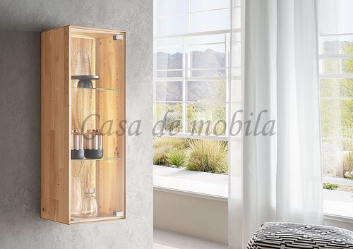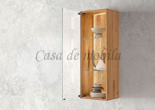 Echtholz Hängevitrine 1-türig | Wildeiche massiv geölt, mit Beleuchtung