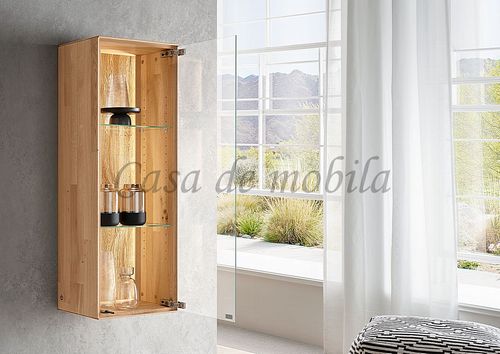 Hängeschrank mit Glas HERZBERG 38x105x30cm Asteiche massiv geölt sandgestrahlt beleuchtet