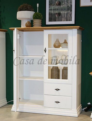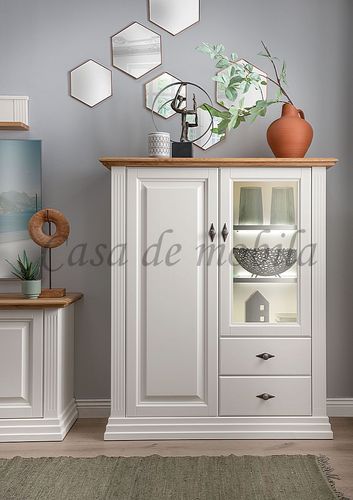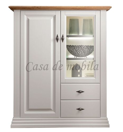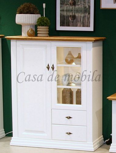 Landhausstil Highboard 2-türig aus massiver Kiefer weiß und Eiche