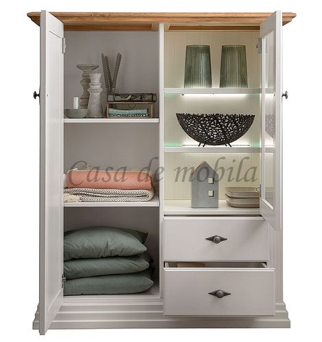 Geschirrschrank Country Home 113x134x45cm Kiefer weiß lackiert Wildeiche geölt