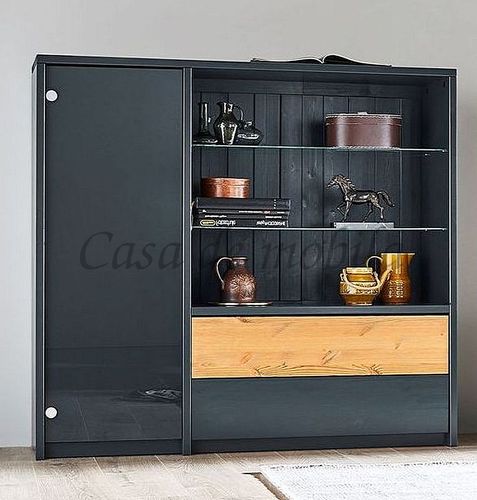 Büroschrank CONTRA 134x123x33cm Kiefernholz grau lackiert und gelaugt geölt