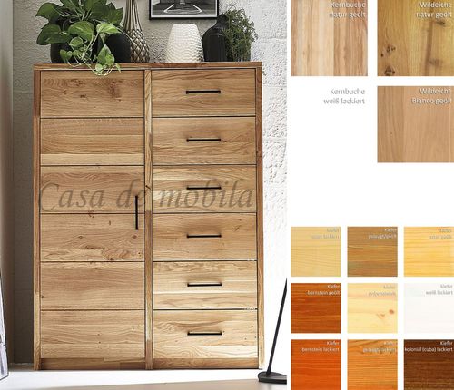 Massivholz Wäschekommode CONTRA 92x123x33cm Kiefer Kernbuche Eiche natur oder Bianco geölt