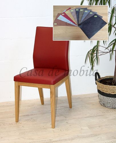 Massivholz Stuhl Laura mit Polster-Sitz und -Lehne Lederimitat Eiche massiv