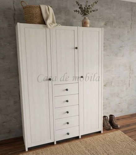 Wäscheschrank 3-türig mit Schubladen Kiefernholz weiß grau