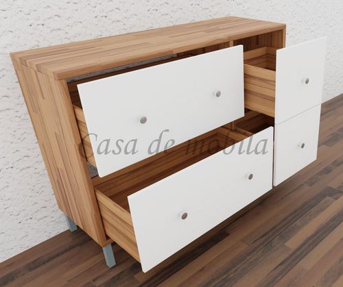 Kommode mit Schubladen CONTRA 134x97x46cm Kernbuche geölt weiß