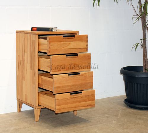 Kommode mit Holzbeinen, 4 Schubladen Kernbuche