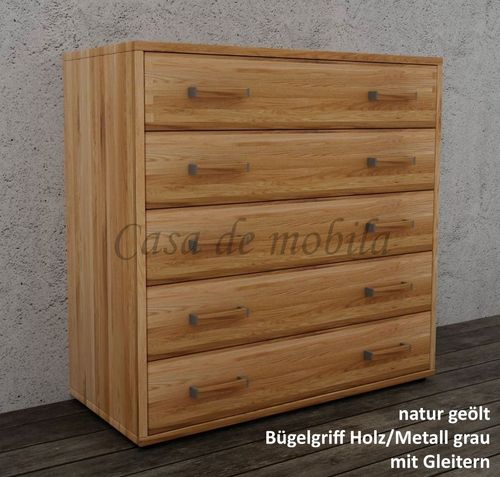 Massivholz Wäschekommode mit 5 Schubladen MIDO 90x84x40cm Buche Eiche massiv geölt
