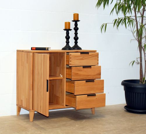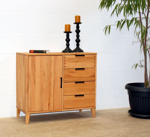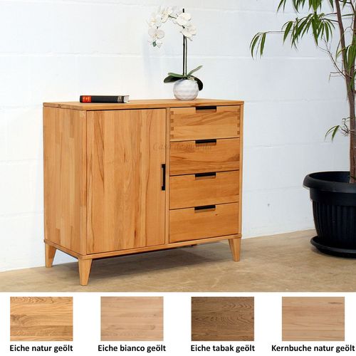 Massivholz Kommode mit Tür und Schubladen MIDO 90x80x40cm Buche Eiche massiv geölt