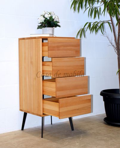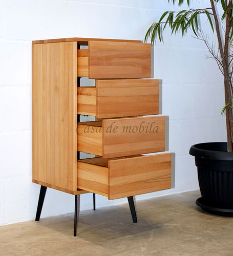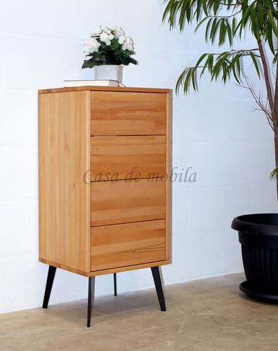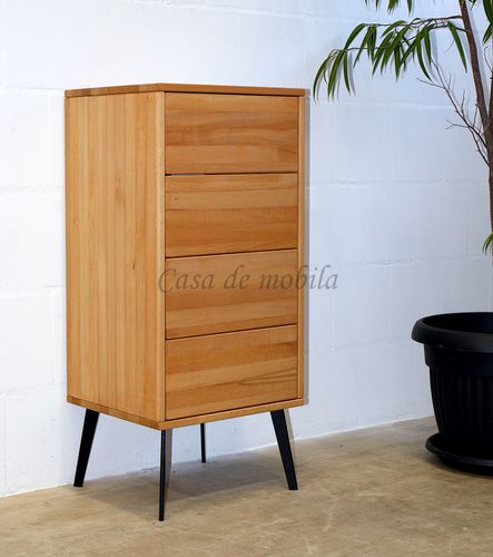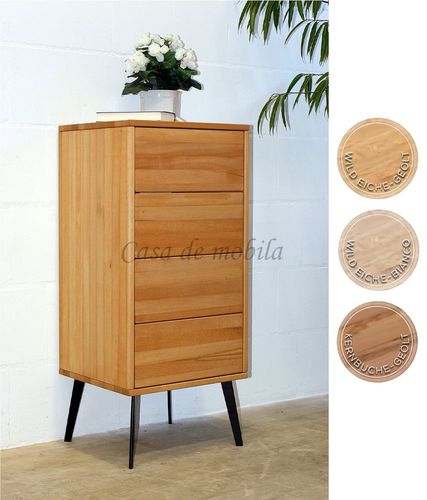 Kommode mit 4 Schubladen und Metallfüßen in Kernbuche, Wildeiche massiv natur oder bianco geölt