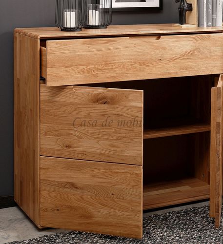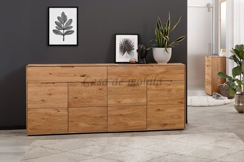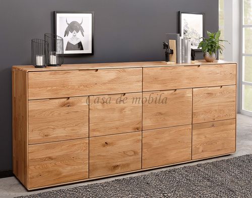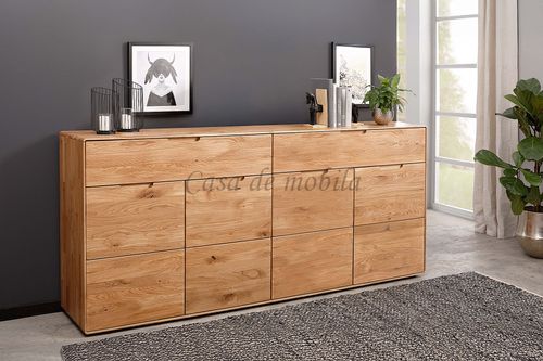 Die Kommode VI 200x91x40 cm aus der Serie GOSE besticht durch ihre massive Wildeiche mit geölter Oberfläche, die jedem Raum natürliche Wärme und eine einzigartige Maserung verleiht. Sie bietet viel Stauraum mit vier Türen und zwei breiten Schubladen, jeweils mit Soft-Close-Funktion, und verbindet so Funktionalität mit hochwertigem Design. Durch die runde Formensprache und integrierten Griffmulden fügt sich das zeitlose Sideboard in moderne wie klassische Wohnräume ein.