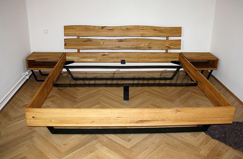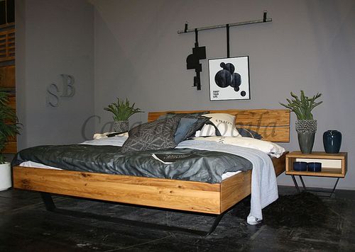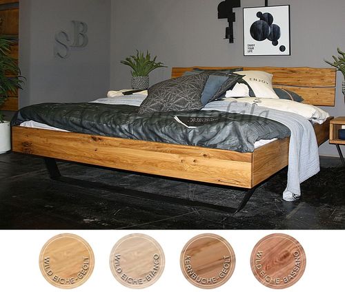 Kufenbett 140/160/180/200x200 Kernbuche Wildeiche massiv mit Kopfteil Baumkante