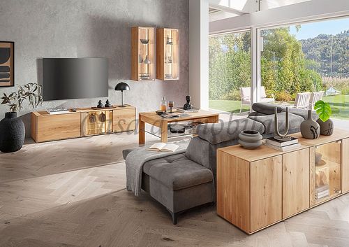 HERZBERG Möbel werden aus massiver Wildeiche hergestellt, natürlich geölt und mit sandgestrahlten Akzenten versehen. Grifflose Türen mit Push-Funktion sind Qualitätsmerkmale dieses Möbelprogramms.