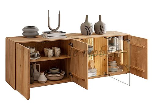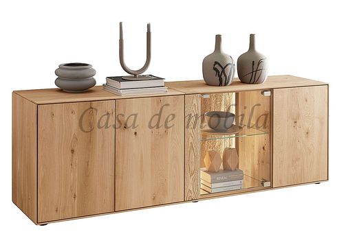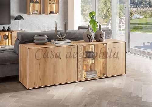Kommode niedrig HERZBERG 182x61x39cm Asteiche massiv geölt sandgestrahlt beleuchtet
