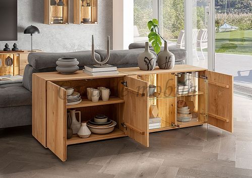 Echtholz Kommode 4-türig | Wildeiche massiv geölt, mit Beleuchtung